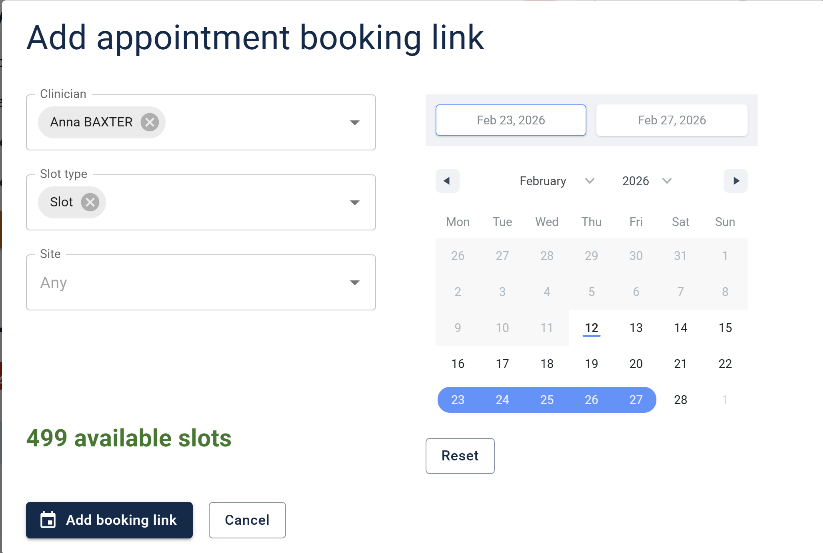 You can now include a self-book appointment link for patients to book an appointment that is convenient to them, in all outbound messages. You can tailor each booking link to ensure that the patient books in with the right clinician, appointment type, site, or time frame.