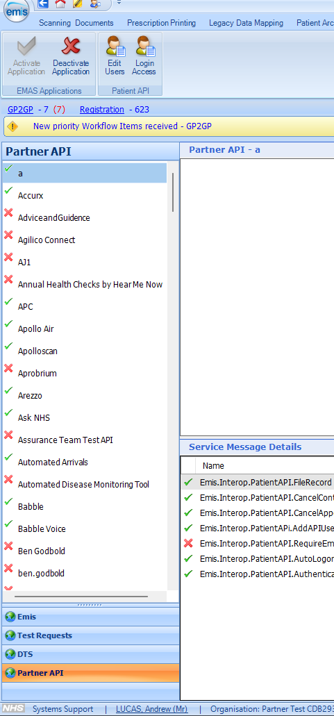 In order to prevent your practice from incurring further API fee's from EMIS after ending your contract with Engage Health, you'll need to make sure to come into the EMAS manager section of EMIS Web and de-activate the Patient Entry Touchscreen API.